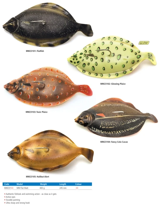 Wenn sich die riesigen Heilbutte in flachen, sandigen Bereichen niederlassen, warten sie nur darauf, dass kleine Schollen und Flundern über sie hinwegflattern. Und wenn Flat Matt vorbeischwimmt, der für alle Welt wie eine panische kleine Flunder schwimmt, können sie nicht anders. So etwas haben Sie noch nie geangelt! Jiggen Sie ihn mit kurzen, deutlichen Zügen an der Rute, um ihn verlockend nahe am Grund zappeln zu lassen, oder locken Sie ihn langsam nach oben in die pelagische Zone, um eine explosive Reaktion auszulösen.Lebensechter KöderEntworfen für riesige Dorsche und HeilbuttAktive AugenHaltbare FarbeUltra scharfer und starker MeeresangelhakenHaken: Einfach #10/0Einschließlich Ersatzkörper