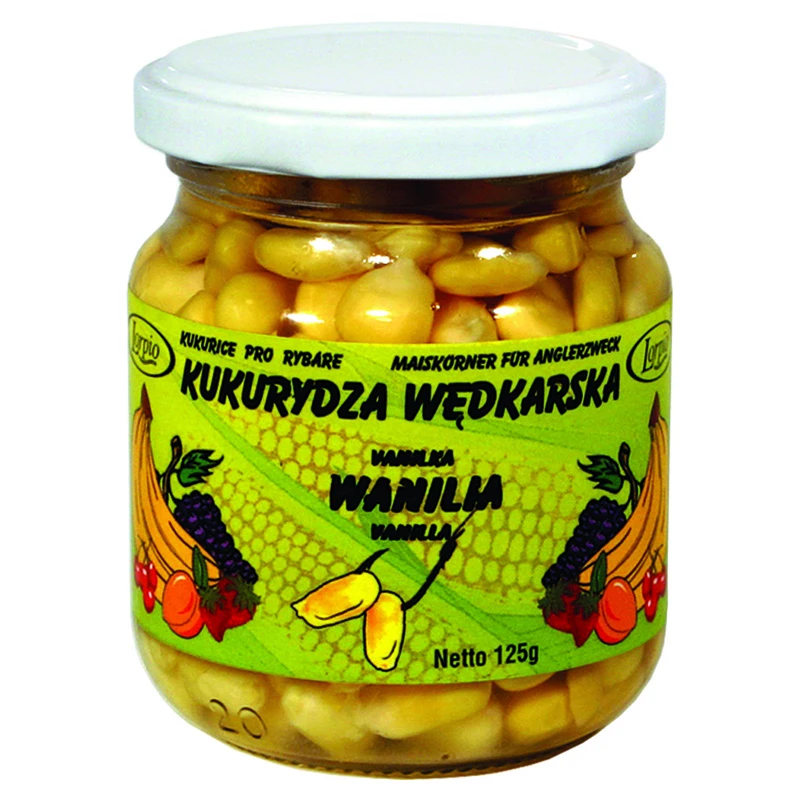 Ganze Maiskörner, bei denen das Korn nicht herausrutscht und einen festen Hakenköder ergibt, der gut am Haken sitzt. Erhältlich in den Geschmacksrichtungen Vanille, Tutti Frutti und Honig.Gewicht: 125 g